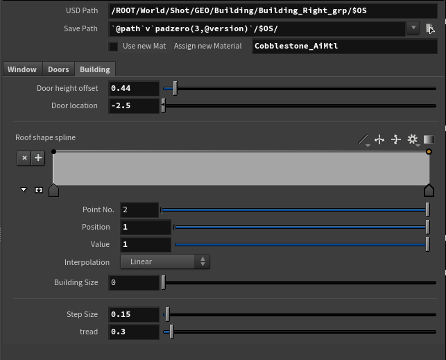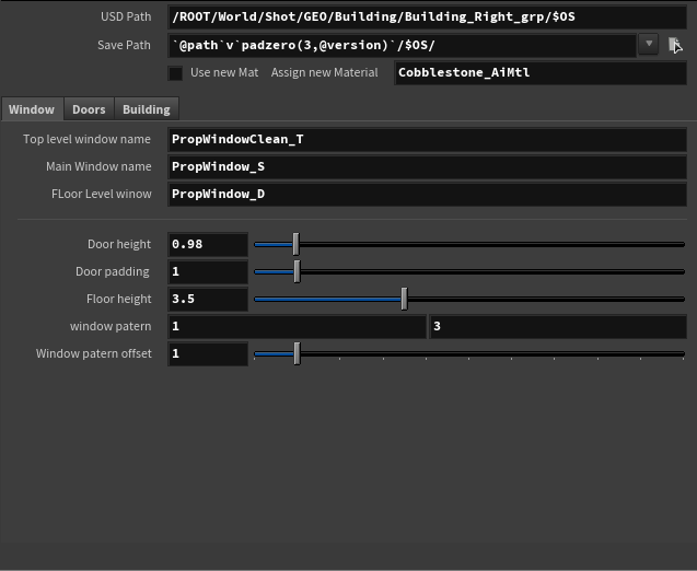 I created a procedural building HDA to generate building assembly for each blockout building placed in the layout scene, including windows, doors, roofs, and textures from the asset database. I used scatter USD files for asset groups and referenced them into a USD containing the final building assembly.