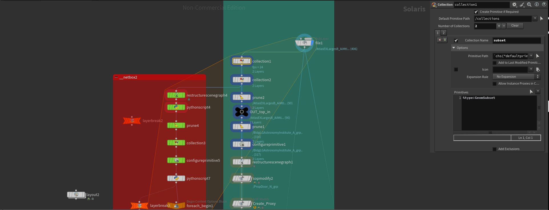After importing the prepared USD as a sublayer, I created collections for use later in the pipeline: